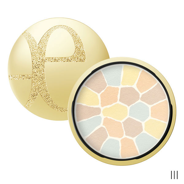 ・ラ プードルの上にパフをあて、パフを45度ほど回転させ、5色のペールカラーがほどよくブレンドされるようにお粉をとります。
