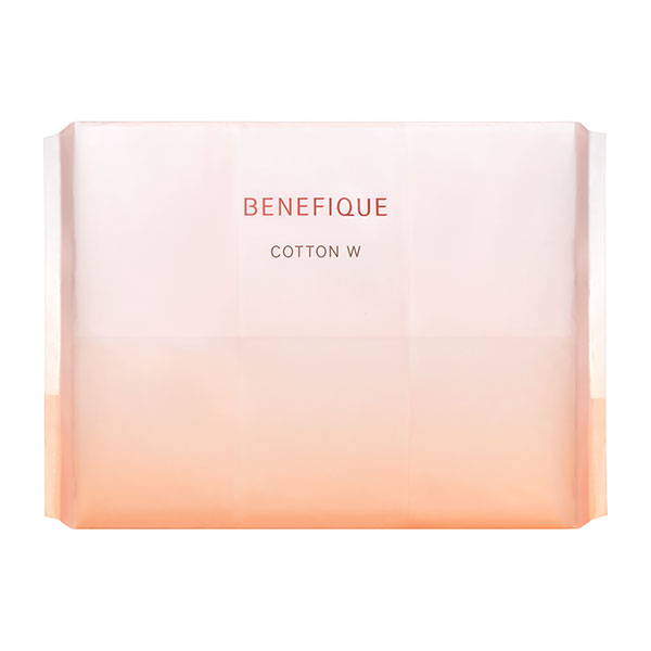 美容成分を含んだ化粧水や乳液などを肌にしっかりと行き渡らせる、2枚に割けるコットン。ホワイト面とピンク面の両面タイプ。 コットンサイズ 60mm×75mm