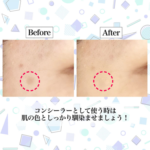 カバーしたい部分に直接塗り、指で軽くたたきなじませます。フェイスパウダー等の上からも使用できます。